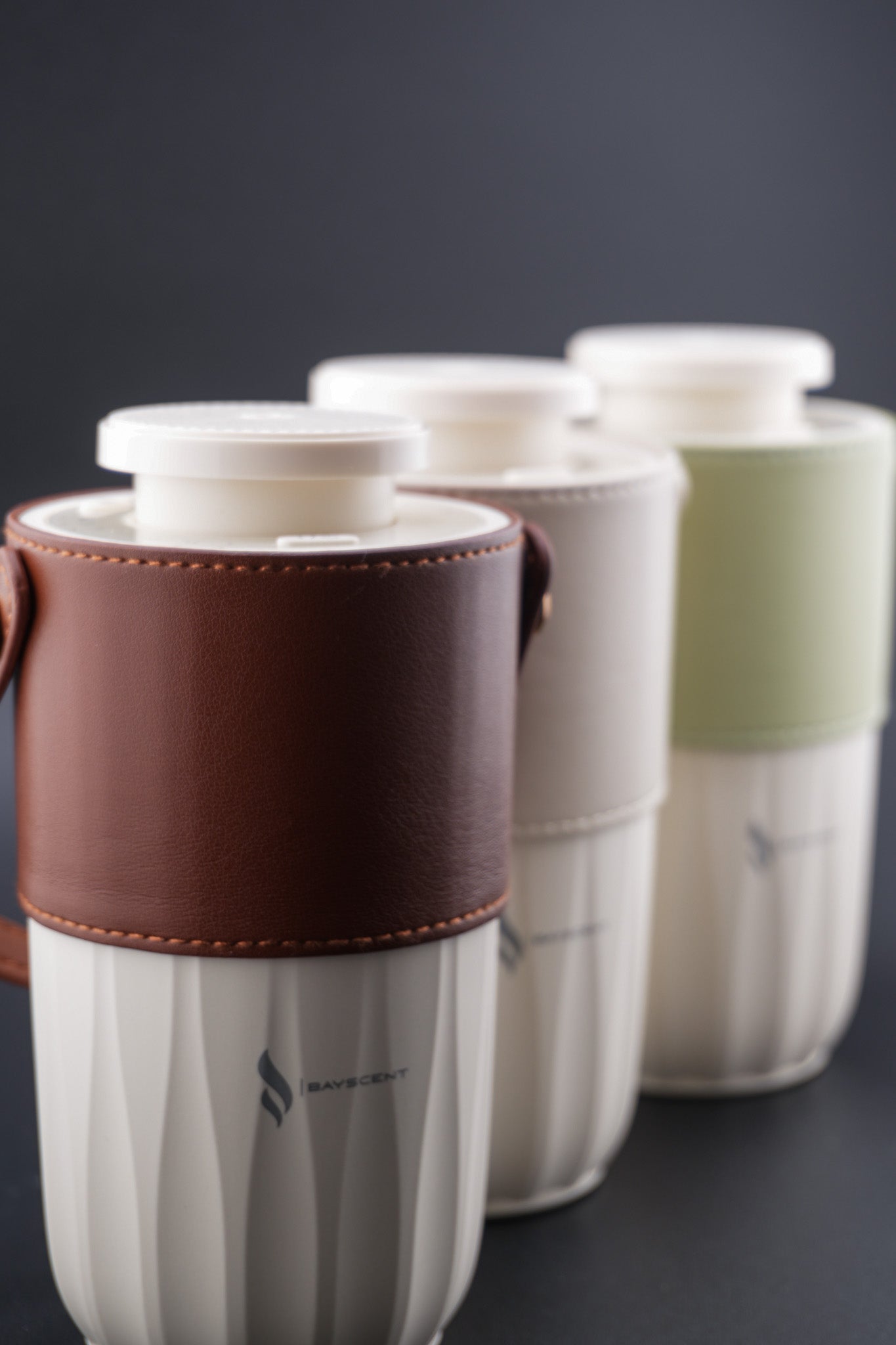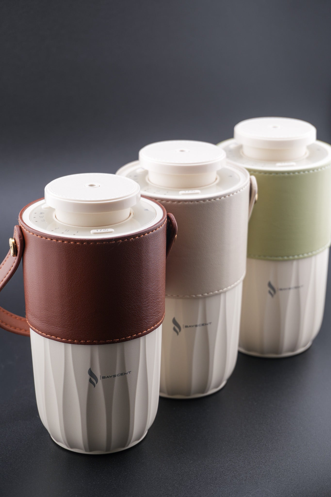 Natürlich im Look, flexibel im Einsatz. Der Bayscent Grove Go vereint modernes Duftmarketing mit tragbarem Design – ideal für Orte, an denen Mobilität, Stil und Wirkung gefragt sind. Die Hülle aus veganem Leder verleiht dem Gerät eine warme, hochwertige Ausstrahlung.