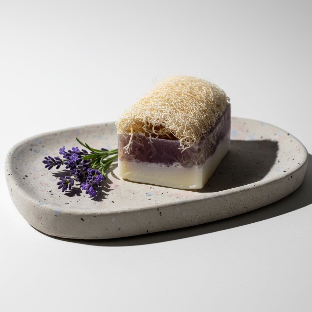 Die natürliche Luffa-Faser sorgt für ein mildes Peeling und verwöhnt die Haut mit einem Hauch von Entspannung – ideal für abendliche Pflegerituale.