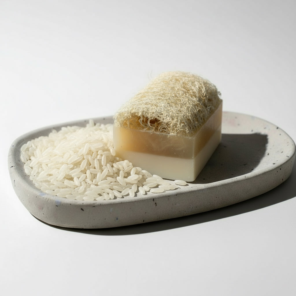 Unsere Golden Silk (Reis & Milch Luffa-Seife) reinigt die Haut auf natürliche Weise, spendet Feuchtigkeit und hinterlässt ein seidiges Gefühl.